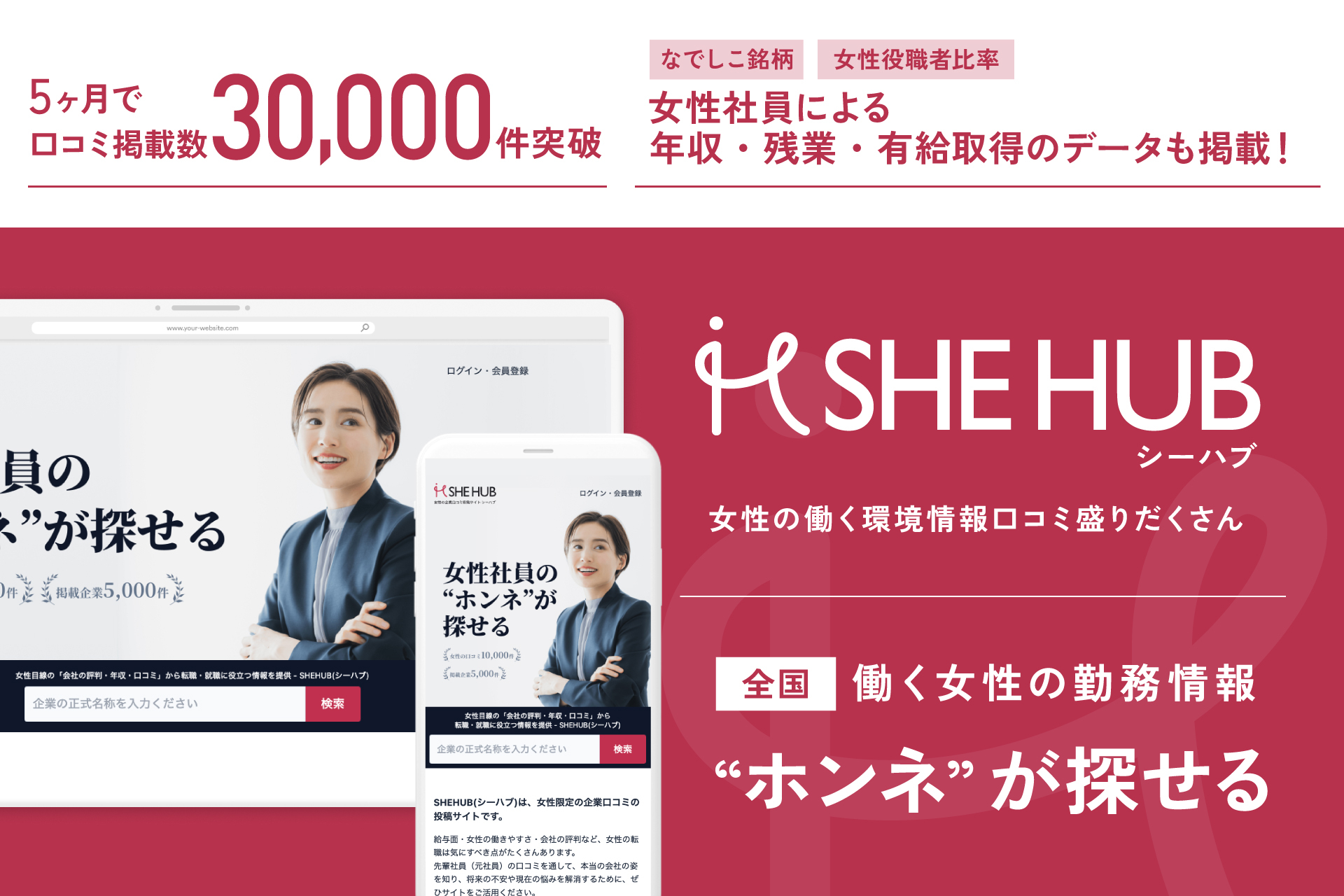 SHEHUB(シーハブ)は、女性限定の企業口コミの投稿サイトです。